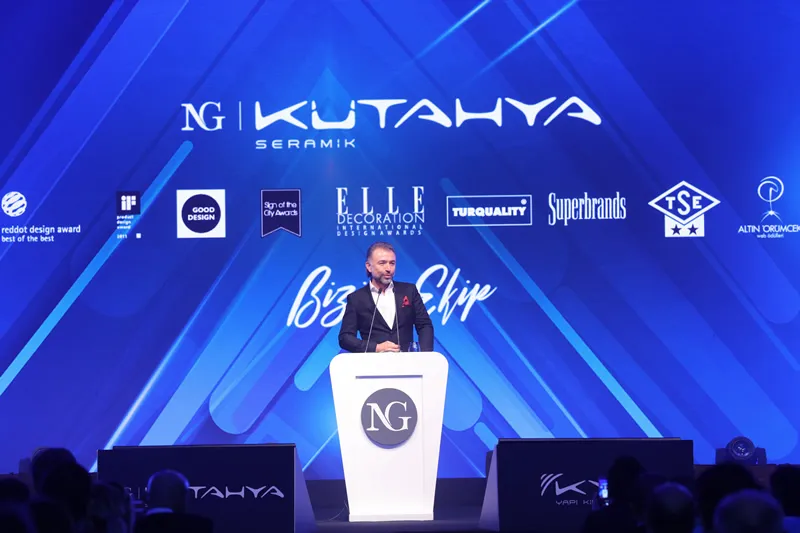 NG Kütahya Seramik Yönetim Kurulu Başkanı Erkan Güral açılış konuşmasında: ’’Bugün burada sizlerle olmaktan heyecan duyuyorum. Mutlulukla belirtmek isterim ki seramik fabrikalarımızın kapasitesini arttırma yönünde iki yeni fırın ilavemiz oldu. Ailemiz her geçen gün genişliyor. Bu yeni yatırım ile birlikte tamamı büyük ebat üretimi olacak şekilde toplam 36 milyon m2 üretim kapasitesine sahibiz. Dünyada bugünkü teknolojiler çerçevesinde en büyük ebatları yapan fabrikayı sizlerin huzuruna sunmuştuk. Farklı bir ürün grubunu tüketiciyle buluşturmak hepimize inanılmaz kolaylıklar ve kârlılıklar sağladı. İlk olmak her zaman için daha başkadır. ‘Ya ilk olacaksınız ya da en iyisi olacaksınız’. Biz ilk olabildiklerimizde ilk, olamadıklarımızda da en iyisi olma gayretimizden asla ödün vermedik. 2018 için büyüyen şantiye pazarında daha fazla yer alabileceğimizi biliyorum. Dolayısıyla çalışma arkadaşlarınız ile birlikte göstereceğiniz gayretin; hizmet, servis ve rekabet sağlayabilmesi açısından her zaman yanında olacağız. O pazardan daha fazla pay alabilmek için ne gerekiyorsa yapacağımızı da özellikle belirtmek istiyorum.’’ dedi.