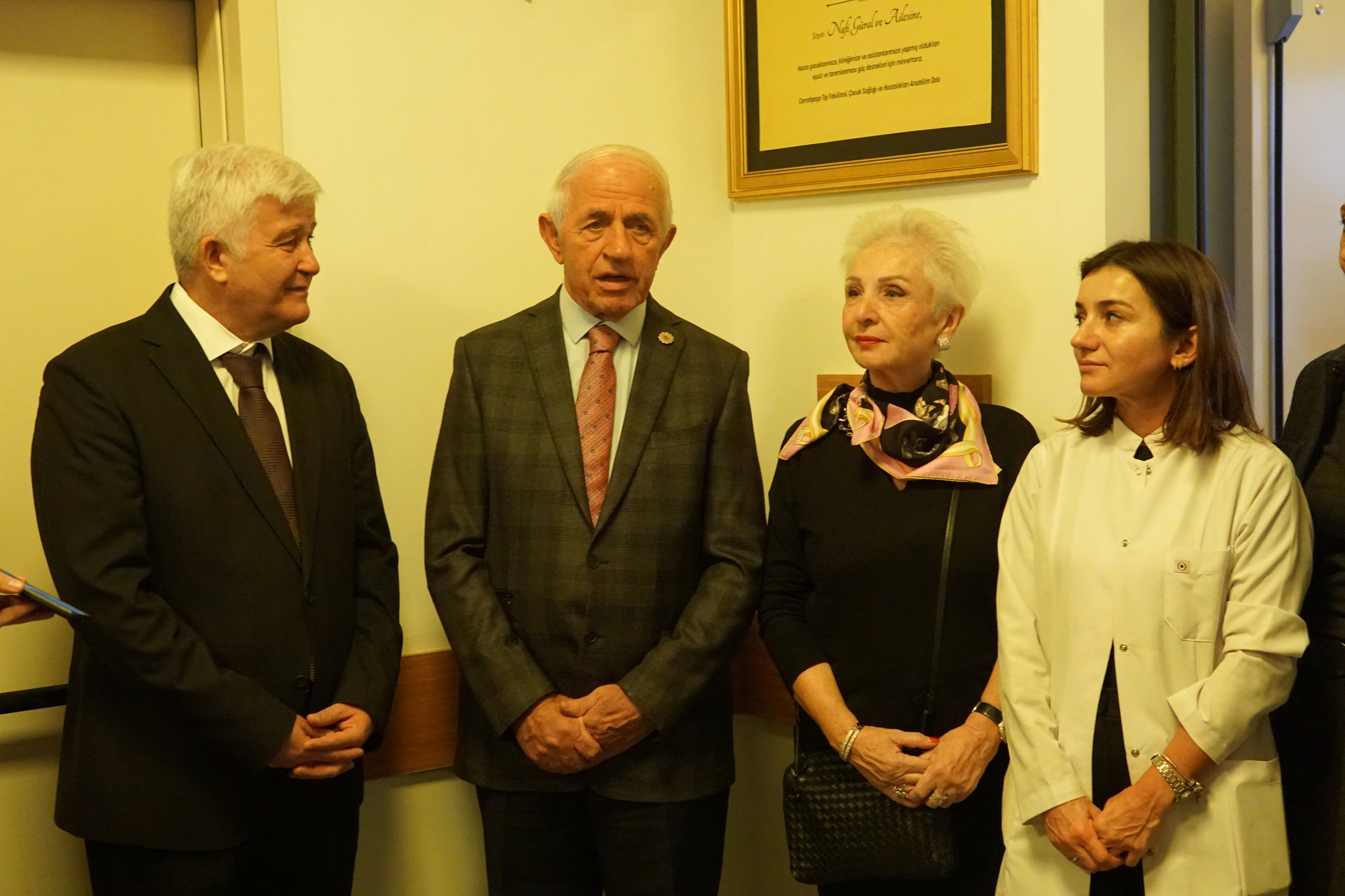 “Burası Türkiye'nin en büyük çocuk kliniği. Sayın Nafi Güral ve ailesi sanki kendi yuvalarıymış gibi kliniğimizin yenilenmesine katkı sundular ve mükemmel bir şekilde yenilediler. Çocuklarımızı sağlıklı bir geleceğe hazırlamak için gece gündüz çırpınan Cerrahpaşa Pediatri ailemize yaptığı inanılmaz katkılar için GÜRAL ailesine minnettarız.Özellikle asistan yaşam odalarımız, asistanlarımızın çalışma birimleri, hastalarımızın yattıkları odalar, hastalarımızın bakım odaları yeniden onarıldı ve kullanılmaya başlandı. Bunun için Nafi Güral ve ailesine minnettarız.’’