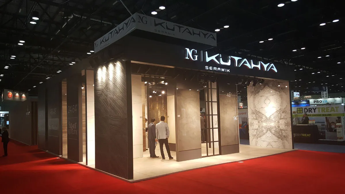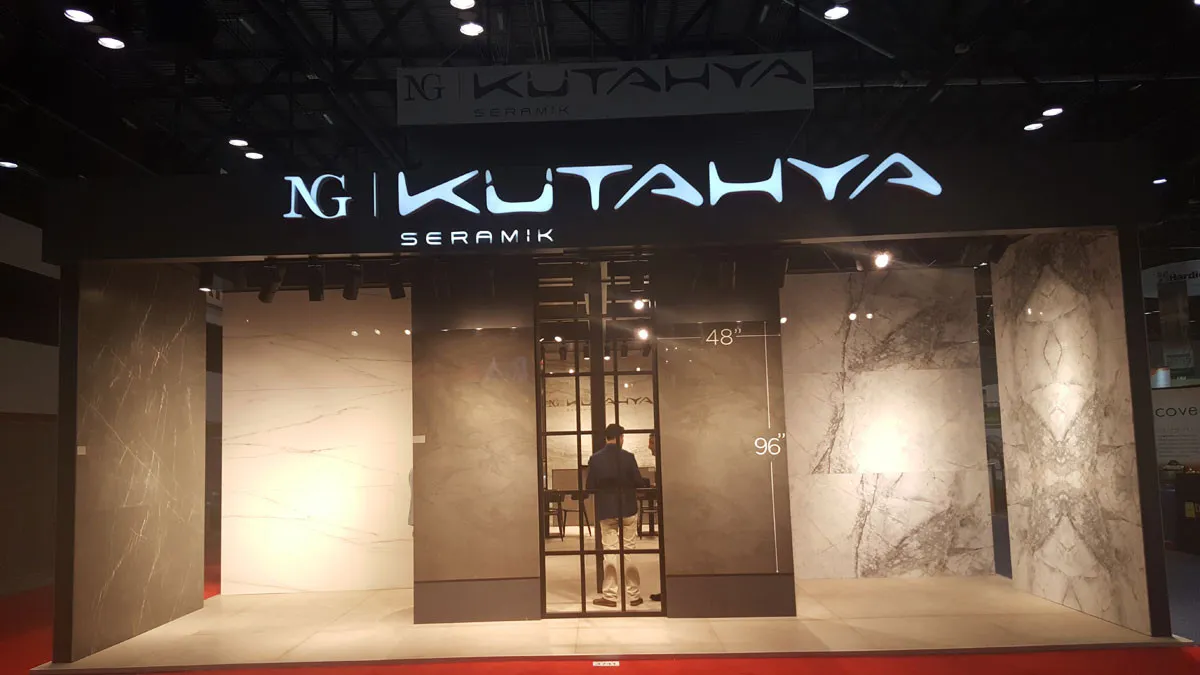 Yenilikçi bakış açısıyla seramiğe farklı bir boyut kazandıran NG Kütahya Seramik 120x240 cm, 60x240 cm, 60x160 cm, 120x120 cm, 60x120 cm ve 18x118 cm ebatlarındaki ürünleriyle fuara katıldı.