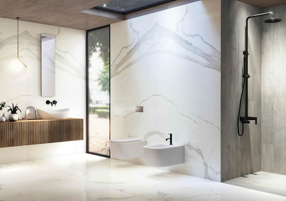 Sirius: Mermerin ihtişamını yaşam alanlarına taşıyan Sirius, 60x120 ve 120x240 cm ebat seçenekleriyle banyonuza huzur veren bir lüks dokunuş katacak.