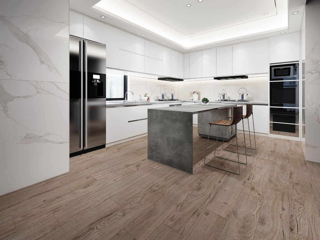 Bir çiftlik evi mutfağı, NG Kütahya Seramik’in ahşap görünümlü porselen yer ve duvar karolarıyla en mükemmel haline ulaşabilir. Eğer mutfağınızda asil bir ihtişam yaratmak isterseniz 60x60 cm Barok serisi porselen karoları tam size göre. 30x60 cm bone ve kiraz seçenekleriyle Legno karolar ise mutfağınızdaki rustik etkiyi perçinlemek için birebir. 30x85 cm meşe ve ceviz rektifiye opsiyonları ile Mara; ahşabın sıcaklığını, mutfak duvarlarınıza yansıtacak ve herkesin dokunmak isteyeceği bir doku yaratacak.