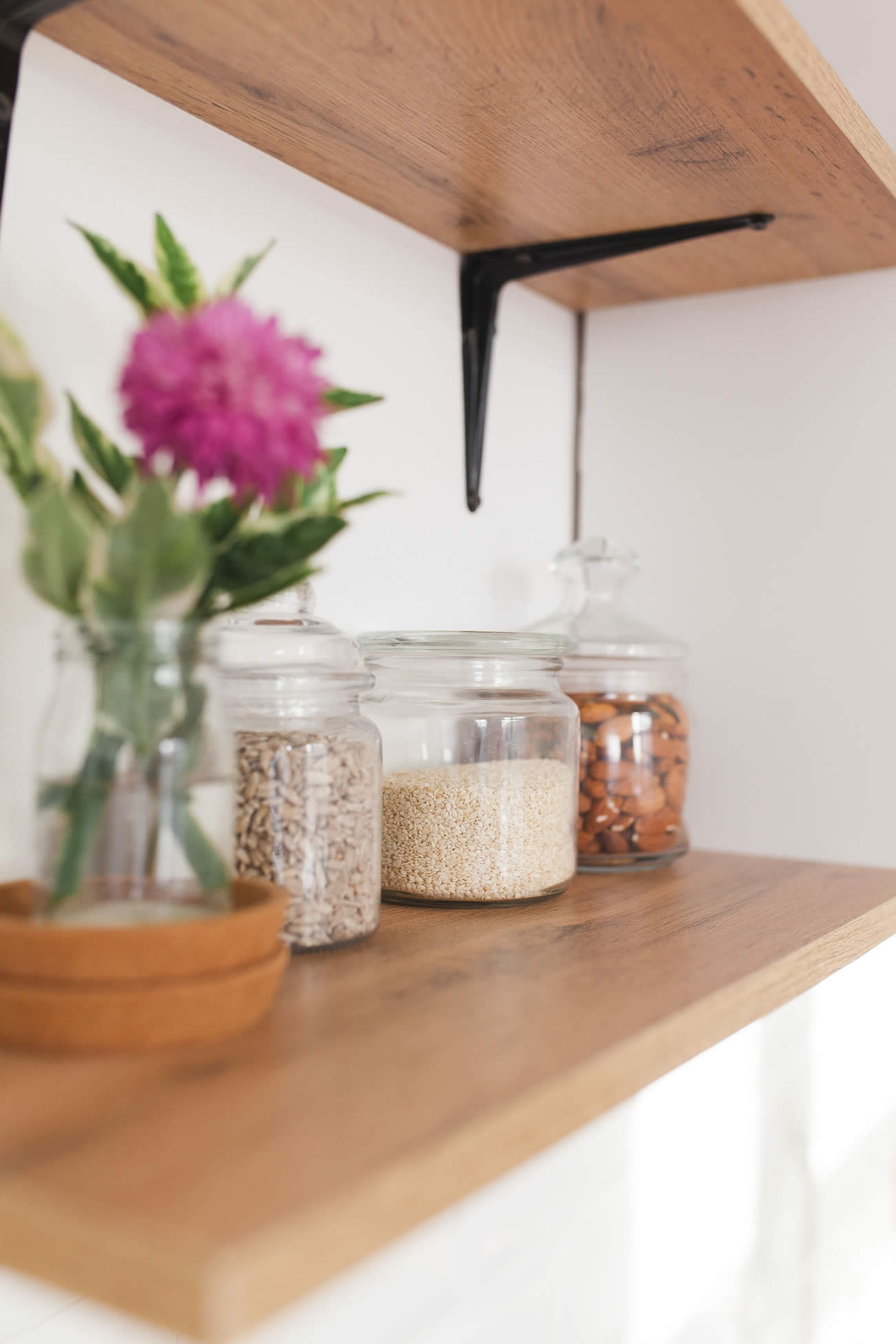 Eklektik atmosferi zenginleştirmek için mutfağınıza geniş ve ferah bir his verecek açık raflardan faydalanabilirsiniz. Bunun için dolapların bazılarının kapaklarını kaldırabilir veya alanınız izin veriyorsa yeni açık raflar takabilirsiniz. Açık raf fikri sizi çok heyecanlandırmıyorsa mevcut kapakları cam kapaklarla da değiştirebilirsiniz.
