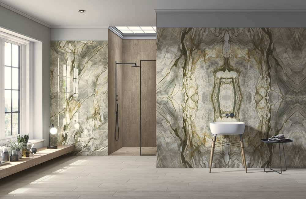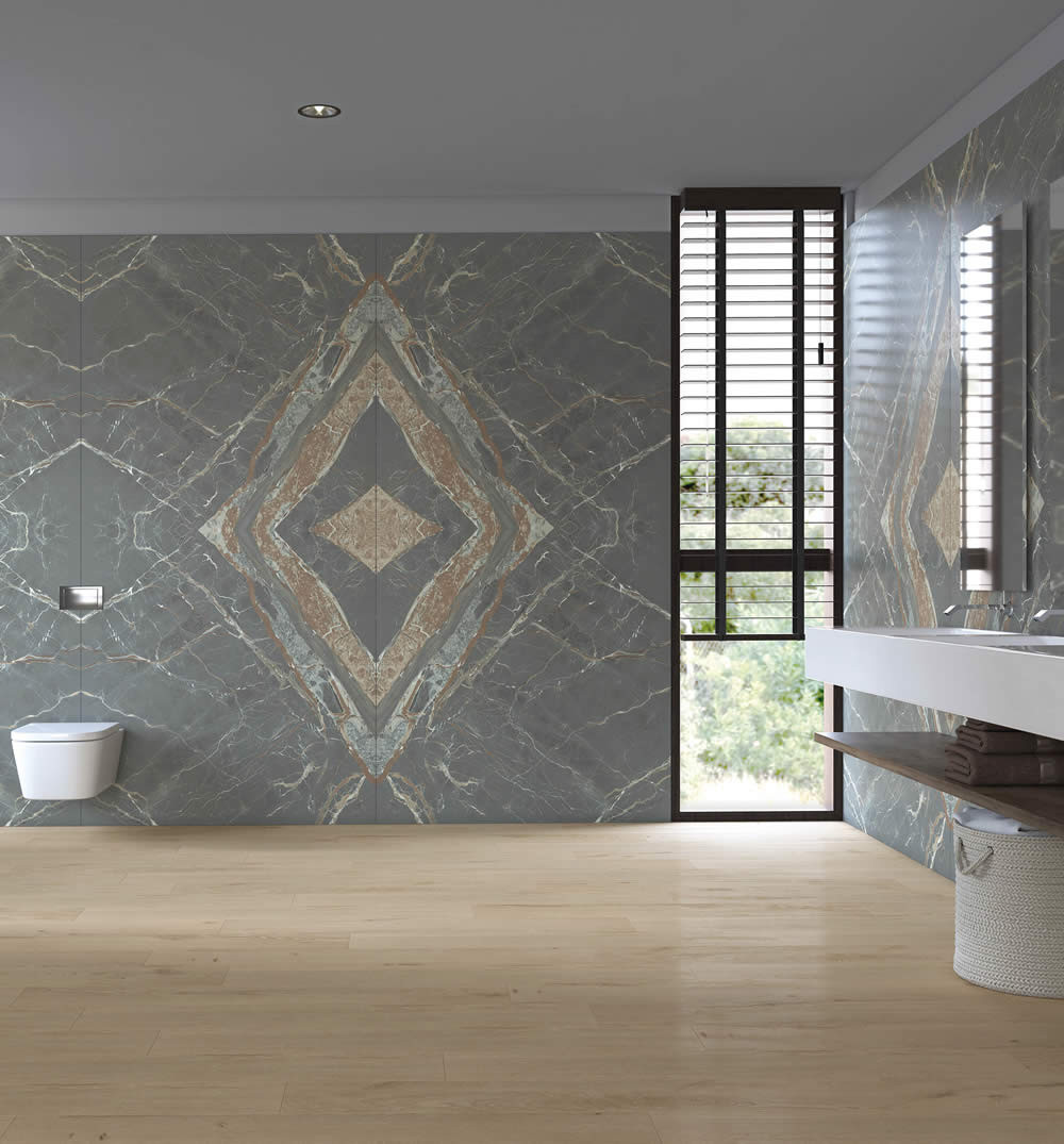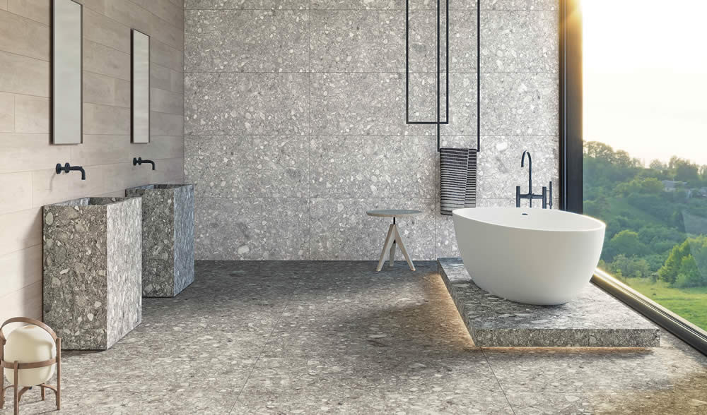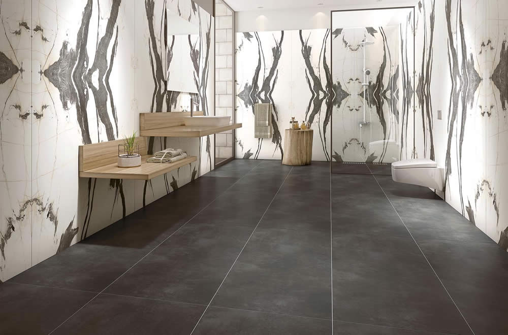 Banyo zemininde neden mi 120x240 cm’lik porselen ve seramikler öneriyoruz? Çünkü bu büyüklükteki ürünler, her şeyden önce daha az derz anlamına geliyor. Daha az derz ise daha kolay temizlik ve daha pürüzsüz bir görünüm demek.
