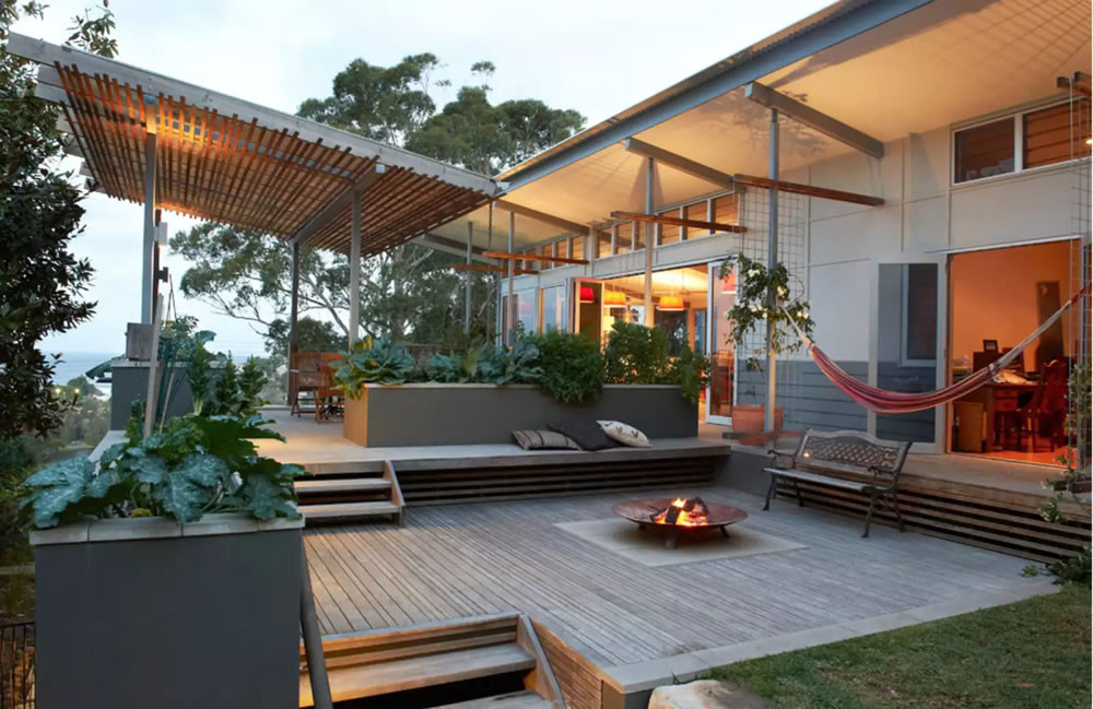 Modern peyzaj tasarımında, bahçeler evin mimari tasarımını tamamlar. Tekrarlanan renk ve dokular ev ve bahçe arasında görünmez ama bütünlük hissi veren bir köprü kurar. İşte bu hissi tam olarak alabileceğiniz bir örnek: True North Architects ekibi, büyük kapı ve pencereleri olan bu çağdaş binayı, ahşap kerestelerin yardımıyla teras ve bahçe ile harika bir biçimde birleştirmemiş mi? Bir gemi güvertesini andıran bu zevkli ev, Avustralya'daki Gold Coast bölgesinde bulunuyor.