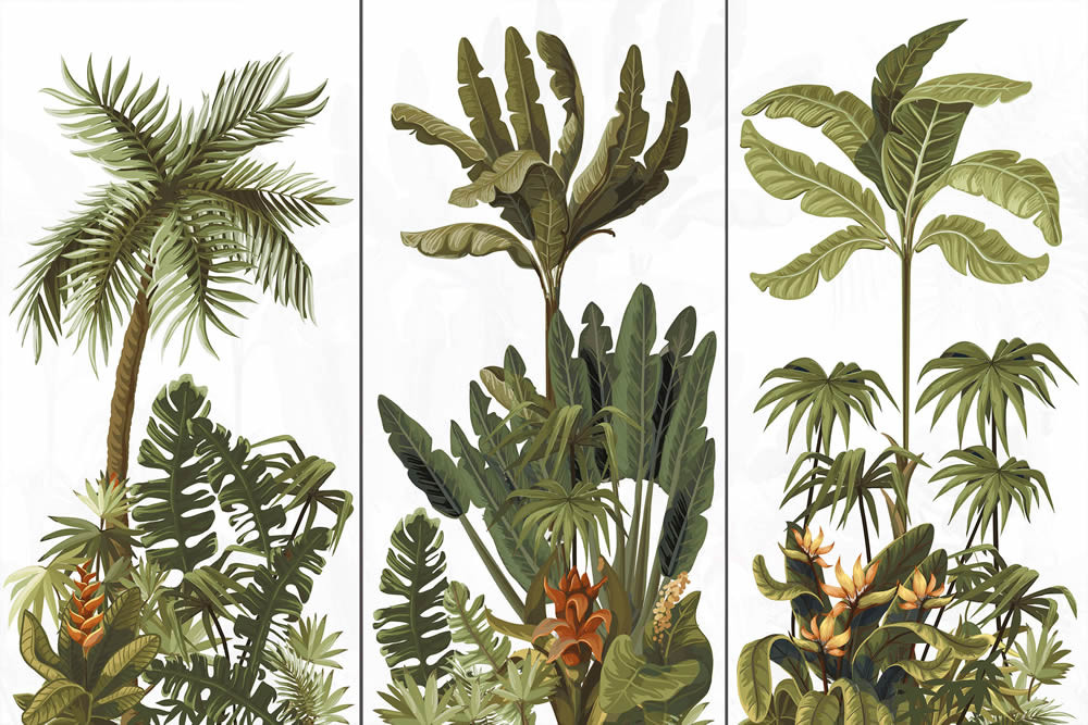 Garden: Üzerindeki devasa yeşil-gri yapraklarıyla tropik bir yağmur ormanını andıran Garden, 120x240 cm ebatlarındaki 3 farklı parçasıyla yaşam alanınızda aldığınız nefesleri bile derinleştirebilecek etkiye sahip!