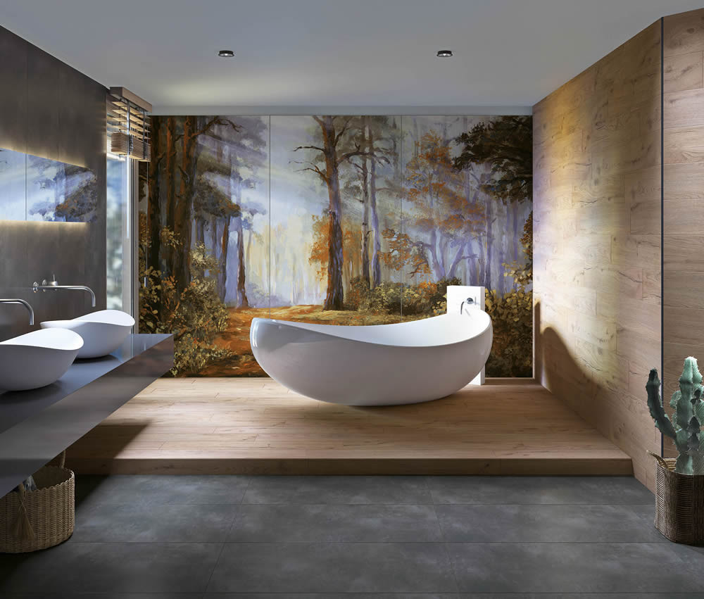 Dört Mevsim: Işık huzmeleri ve rengarenk ağaçlarıyla evinizin baş köşesindeki sanat eseri olmaya aday olan Dört Mevsim, 240x120 cm’lik üç parçadan oluşuyor. Gün batımında bir orman manzarasına karşı duş almak isterseniz Dört Mevsim’i banyonuzda da kullanabilirsiniz.