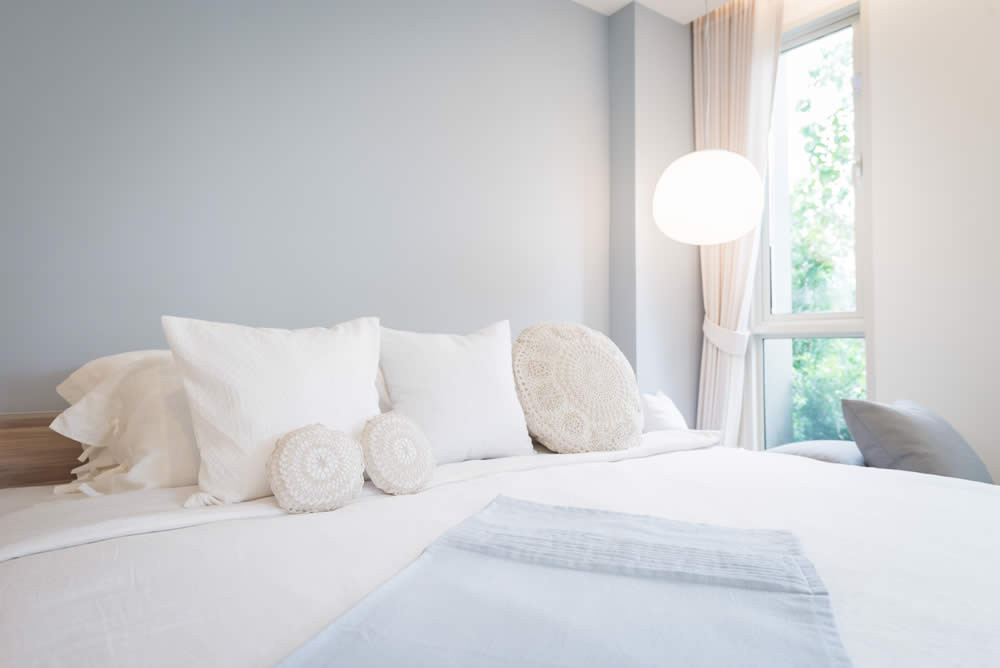 Yatak odanızda huzurlu bir atmosfer yakalamak için buz ya da bebek mavisini beyaz renkle kombinleyebilirsiniz. Tazelik hissi veren bu renkler, daha mutlu sabahları garantiliyor.